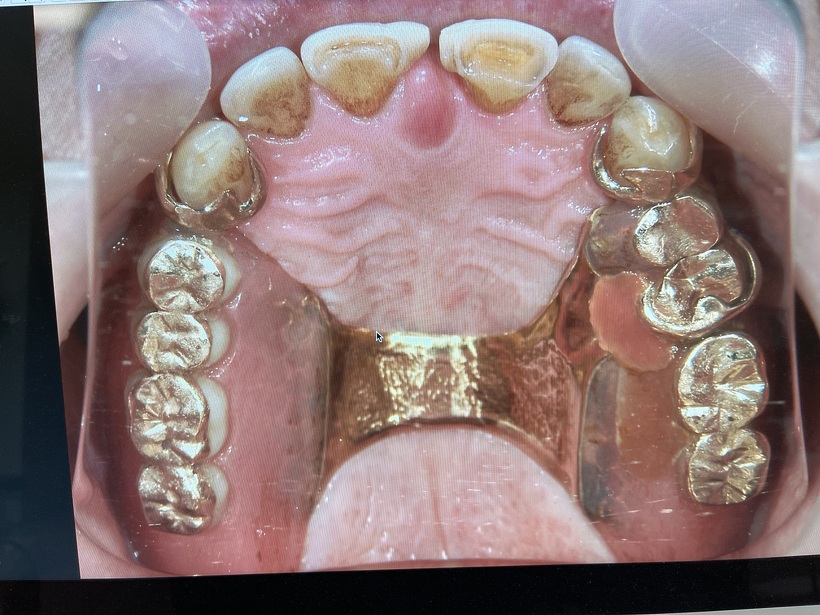 初診より8年後の上顎の写真。初診時の写真は不明。