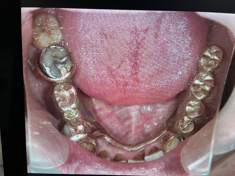 当時当院は保険診療をしていましたが患者さんに自費の義歯の作成を許可して頂きました。初診より1年半後新しい上下の部分義歯が完成しました。最高の金属(白金加金)を使用したため上下で70万円になりました。支払い時患者さんは「高いな~!」と思われたそうです。義歯装着より25年余りが過ぎ多少の修理はあったもののそのままの義歯を快適に使用出来ています。最近の感想は「こんなにも安い買い物は他になかった‼」です。
